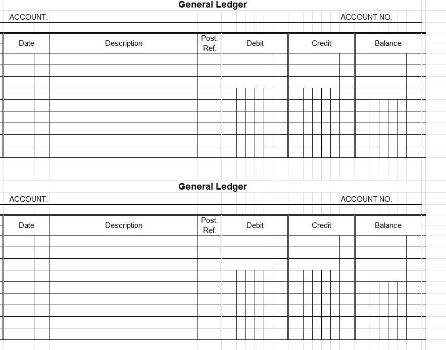 - PGeneral ledger representing the original 5 main accounts: assets, liabilities, equity, income, and expenses